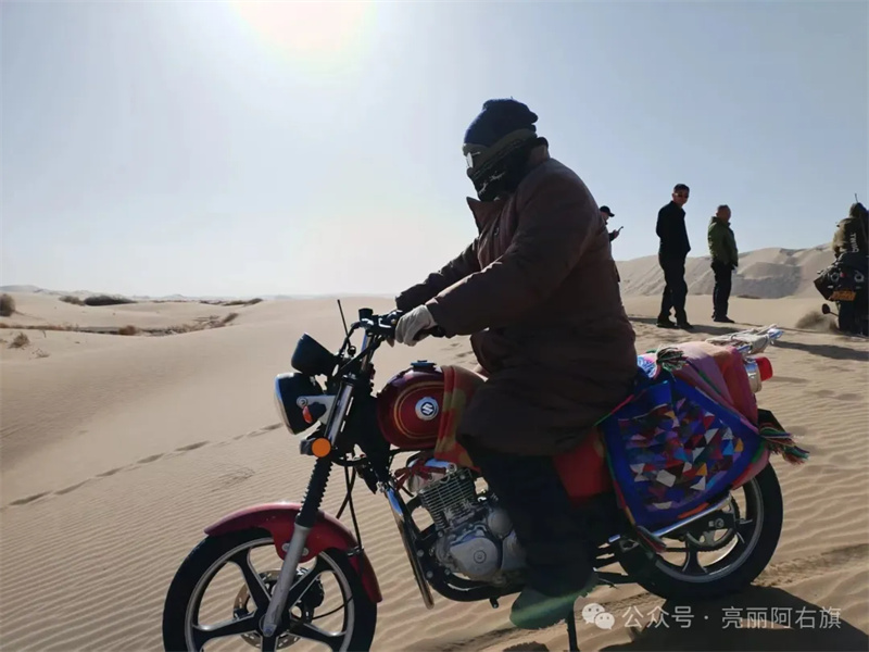 下午2点42分,500多峰骆驼在牧民摩托车的驱赶下平安走出沙漠,一峰峰骆驼缓缓移动,宛如一幅流动的画,构成了巴丹吉林沙漠中一道靓丽风景。
