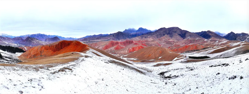 当西伯利亚的寒风掠过河西走廊,祁连山便迎来了一年中最素净的时节。初雪落下时,不像春雨般缠绵,也不似夏雨般急促,而是如天宫散落的碎玉,慢悠悠、轻飘飘地铺满每一寸土地 —— 山峦被裹上厚厚的银裘,原本赭色的岩壁藏进白雪之下,只在沟壑处露出些许肌理,反倒添了几分层次感;草原上的枯草完全被雪覆盖,放眼望去是无边无际的白,唯有偶尔探出的几丛芨芨草,顶着蓬松的雪团,像极了冬日里的精灵;就连山间的溪流,也放慢了脚步,岸边凝结着晶莹的冰花,水流在冰层下叮咚作响,成了这片静谧天地里最灵动的背景音乐。