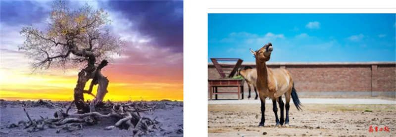 木垒鸣沙山·胡杨林景区里,千年胡杨在雪中挺立,草原坎儿井流淌着戈壁的生存智慧。准东普氏野马基地中,近距离观察国家一级保护动物,感受自然与生命的力量。