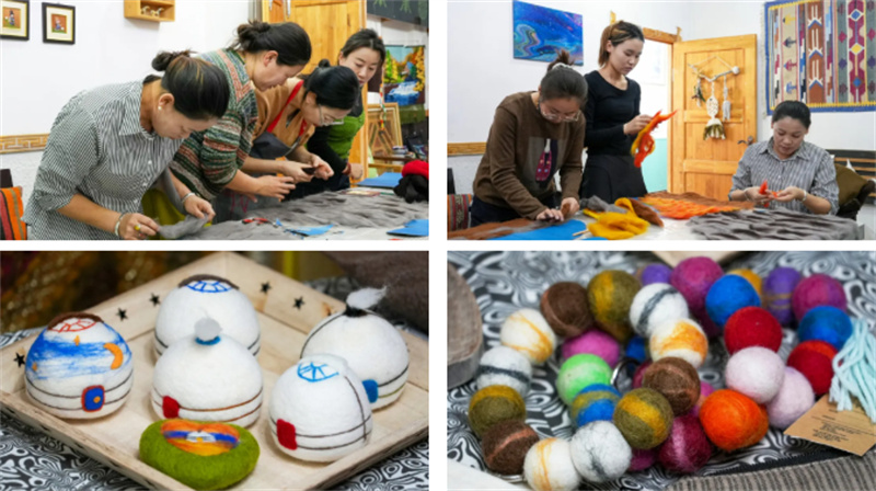 乌乐作为游牧市集的创办者,分享道:“我们举办这样的活动,不仅希望让更多人了解和喜爱特色毛毡产品,也致力于为牧区妇女创造增收机会。”她自大学时期便热爱毛毡艺术,通过自学与系统培训逐步掌握技艺,并不遗余力地传授给身边的朋友,逐步组建起一支毛毡创作团队。“如今,大家在放牧之余投身毛毡创作,产品不仅通过实体店销售,还借助直播和短视频等线上平台走向全国。这不仅让草原手艺走出牧区,也为我们带来了实实在在的额外收入。”