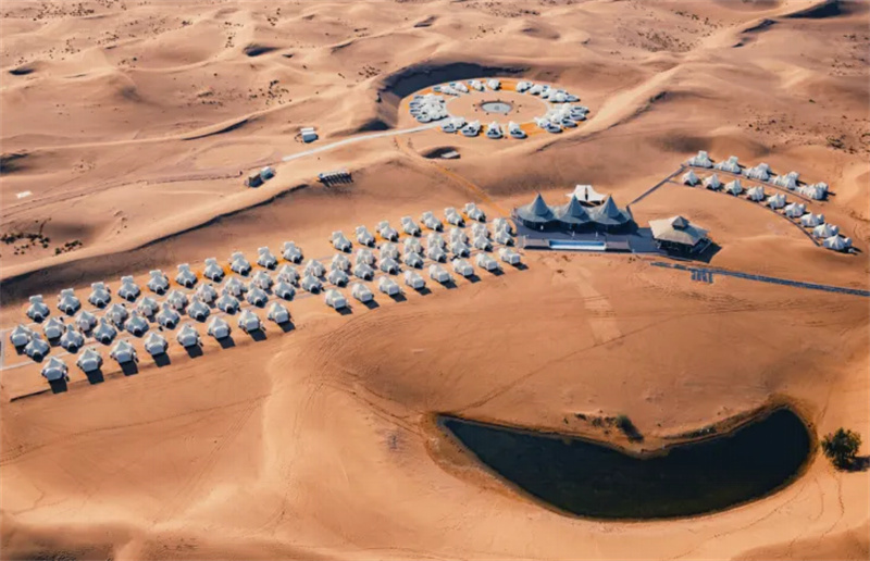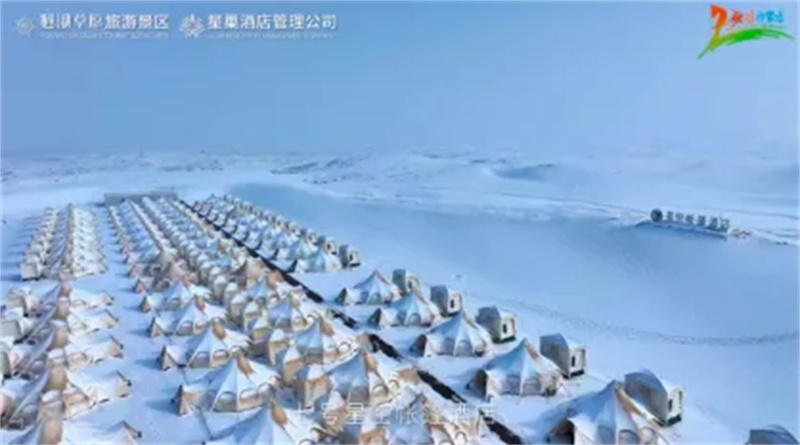 雪境露营:通湖草原旅游区的沙漠雪景,体验沙漠腹地雪地露营,篝火映星空,晨起推门见雪漫黄沙,夜宿轻奢露营酒店,品冰煮羊、饮热奶茶,感受游牧文化冬日温情。
