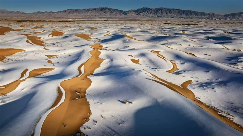 沙漠成了银裹金的奶油蛋糕,