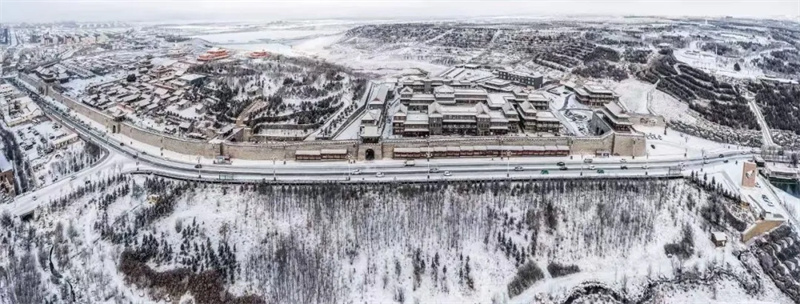古城雪影:定远营古城的青瓦覆上薄雪,灯笼摇曳,漫步其间仿佛穿越千年,感受北疆古城的冬日静谧。