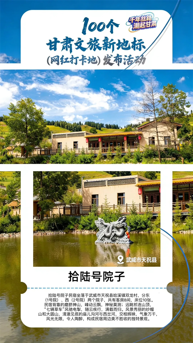 雍正年间,西北战乱,宁远大将军岳钟琪率大军千里奔袭,收复失地,威震西北。当年,岳钟琪将军挥师西进当中为解决军需粮秣不济问题,多方筹划,就地取材,组建“黄金部队”,秘密开进哈溪双龙沟采挖黄金,以补粮饷。这支“黄金部队”在哈溪双龙村西岔小寨筑建将军行营。为保守军事秘密,对外宣称“壹拾陆号院”。经过维修恢复的拾陆号院子,古色古香,典雅明亮,再现了历史原貌,映照了人文光环,衬托出苍松翠柏,流水潺潺。在这里,可幽思怀古,可修身养心,可体验民俗,令人心旷神怡,流连忘返。