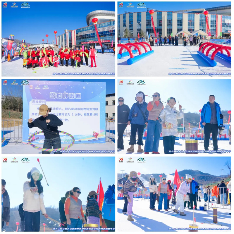 本届嘉年华构建起全人群覆盖的冰雪运动体系,赛事设置与奖励机制亮点突出。千人冰雪竞技挑战赛推出雪地跳绳、雪地投壶等五项个人挑战项目,现场报名通道畅通,充分激发群众参与热情;全民健身冰雪趣味运动会则聚焦五大团体项目,雪地拔河、雪地龙舟、雪地障碍赛、雪地汉诺塔、雪圈竞速接力。兼具竞技性与趣味性的赛事,吸引固原市各工会单位、泾源县干部职工及冰雪爱好者组队参赛,专业裁判现场执裁保障公平。五大团体项目均录取前三名,获奖队伍获得特色精美礼品外,更能在现场购得泾源农特产黄牛肉、蜂蜜、中药材、菌菇等相关产品,现场更有“冰雪消费券”福利,实现“赛事获奖+文旅消费”的双向赋能,让参与者在收获荣誉的同时,深度体验宁夏冬日文旅魅力。